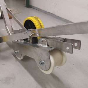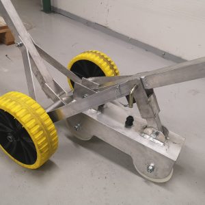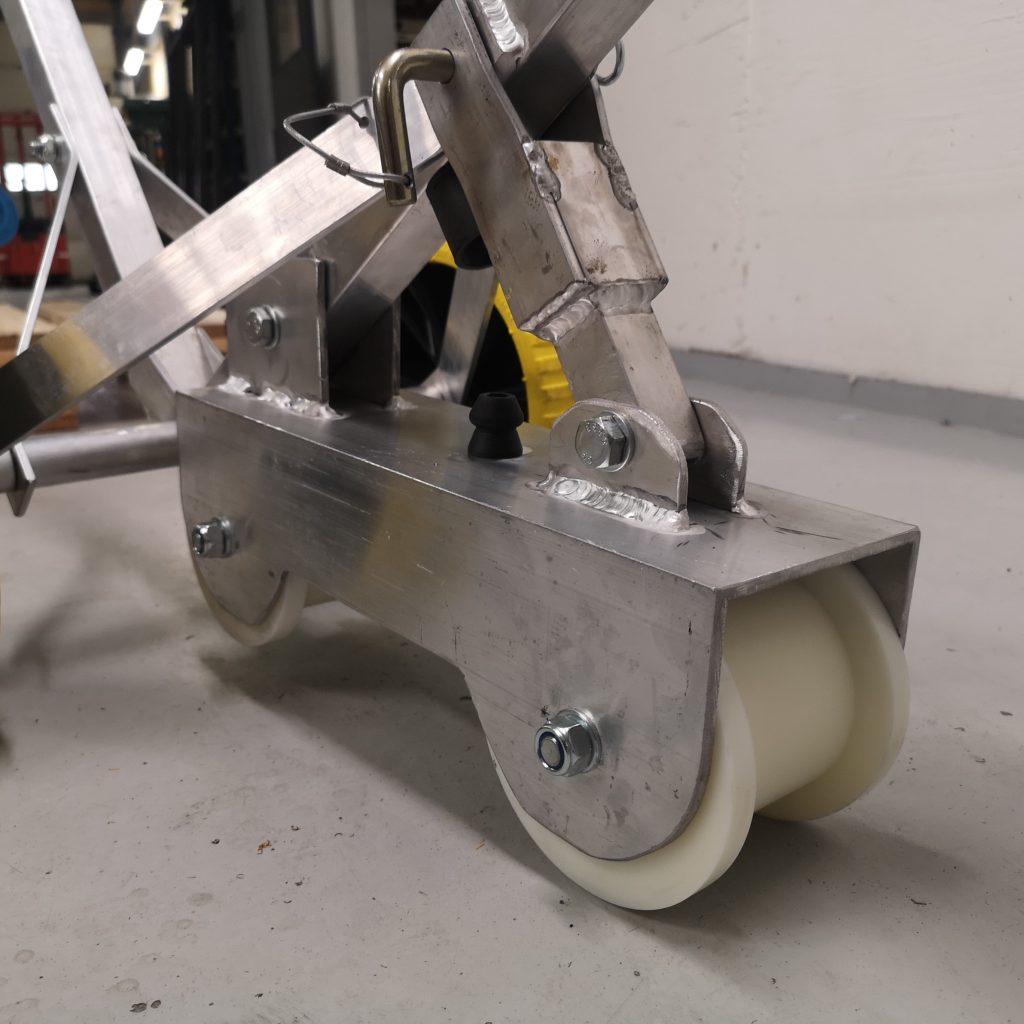 Vores specialtilpassede løftevogn er baseret på vores standardmodel, men er optimeret til Aarsleff Rails specifikke behov. Den er letvægtig (kun 8 kg), terrængående, sammenklappelig og let at transportere. Med en kapacitet på op til 200 kg og evnen til at løfte dæksler fra op til 50 cm dybde, er den ideel til de krævende forhold langs jernbaneskinnerne.