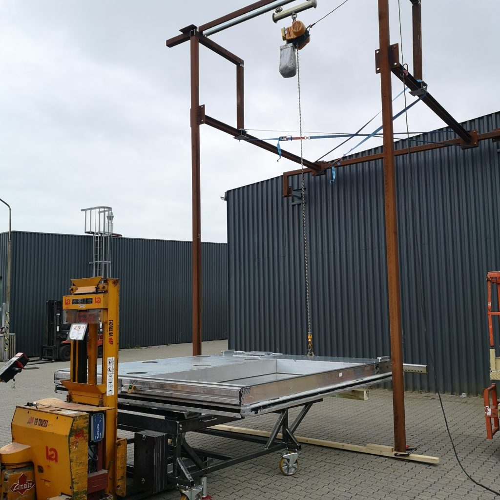 I samarbejde med Kai Andersen A/S specialudviklede vi en rullevogn, der skulle bruges til montering af vinduer på Danmarks højeste bygning, Light House i Aarhus. Da huset var så højt, blev vinduerne kranet op samtidig med betonelementerne. De blev derefter kørt på vognen ud til vindueshullet, hvor kranen havde fat i toppen, og vognen havde styr på bunden. På den måde blev monteringen mere sikker, og kranføreren sparer tid ved ikke at skulle ned på jorden for at hente det næste vindue.