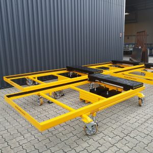 Udviklingsprocessen for rullevognen begyndte med en dybdegående analyse af behovene på byggepladsen. Gennem tæt samarbejde med Kai Andersen A/S blev specifikationer og krav fastlagt. Rullevognen blev designet til at håndtere tunge vinduer, sikre stabilitet under transport og nemt kunne manøvreres på de trange byggepladser. Funktioner inkluderede justerbare holdere, robuste hjul og en mekanisme til sikker fastgørelse af vinduerne.