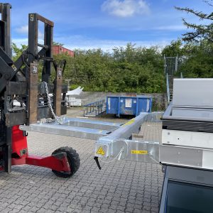 Beslaget er designet til at blive monteret på gaflerne af en medbringertruck og fungerer som et løfteanker til vinduerne. På grund af deres størrelse og skrøbelighed var en specialløsning nødvendig for at sikre, at de kunne monteres uden skader eller ridser. Dette er et godt eksempel på ASP Produktudviklings evne til at levere præcise og tilpassede løsninger, der matcher kundens behov i komplekse byggeprojekter.