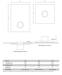 Undermonteret: Monteres under gulvet, så du bevarer et plant gulv, hvor kun toppen af bundpladen er synlig.
