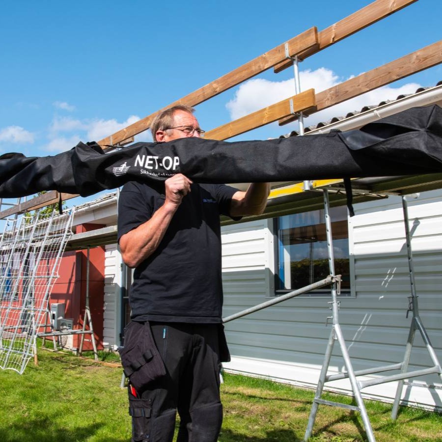 Hvert år sker der mange arbejdsulykker i forbindelse med tagarbejde, ofte med alvorlige konsekvenser. NetOp er udviklet til at forebygge disse ulykker og skabe tryghed for håndværkere, der arbejder i højden. Med en vægt på kun 14 kg og en monteringstid på ca. 5 minutter er systemet både praktisk og hurtigt at tage i brug.